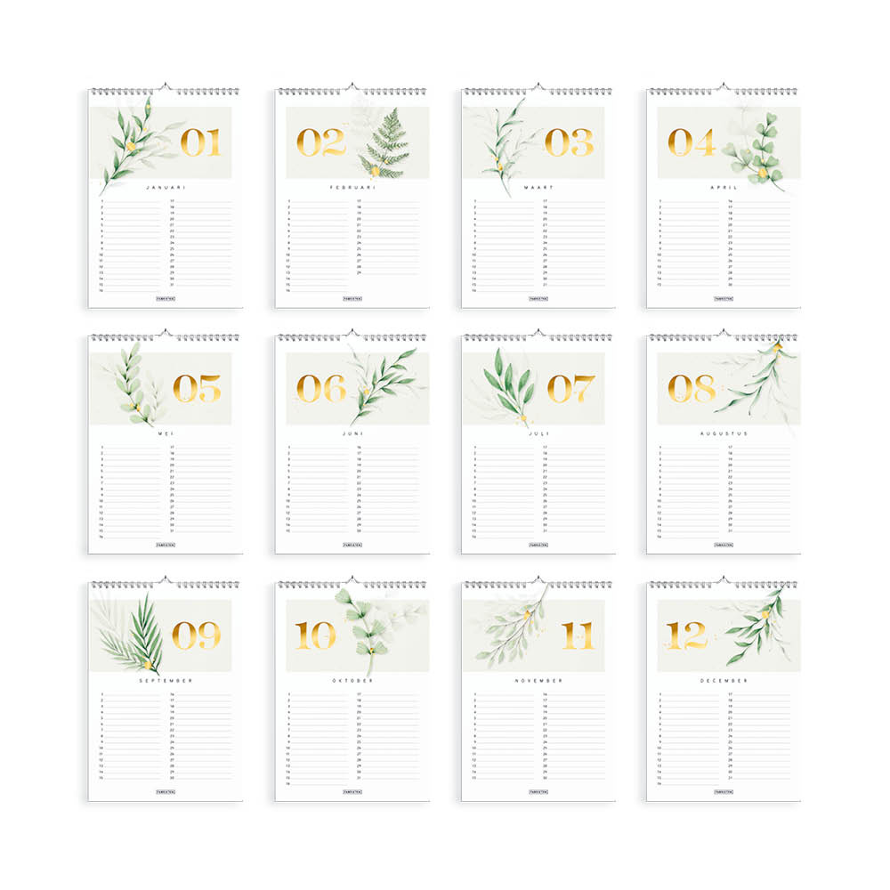 BeschrijvingVerjaardagskalender Botanisch Goud A4
