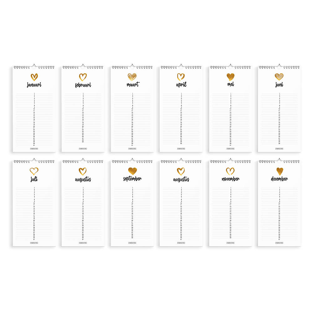 - Elke maand een goudgeel-kleurig illustratie van een hartje